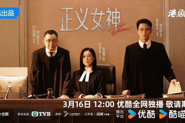 《正义女神Themis》是由TVB出品、钟澍佳监制并执导,潘漫红、谭广源担任编剧的悬疑剧情剧,佘诗曼、谭耀文、陈炜、周嘉洛、许绍雄等领衔主演。该剧于2026年3月16日在优酷播出。