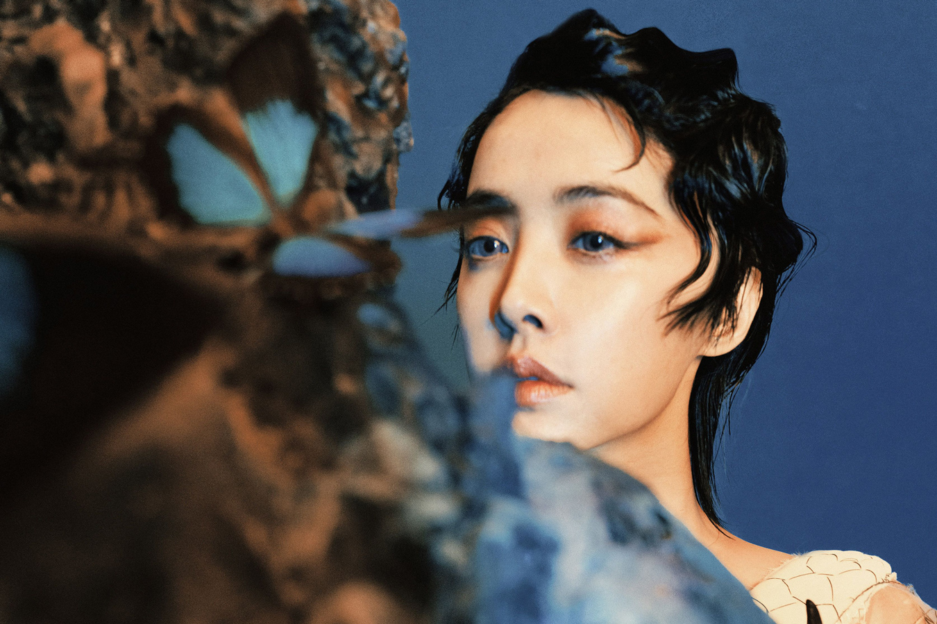 蔡依林日前以一组湿短发造型登上某时尚杂志中国版创刊封面。在蓝色光影中,蔡依林身穿蓝丝绒长裙,搭配微卷湿短发造型,通过极富个人风格的时尚演绎,在光影与道具营造的古典氛围中展现其独特气质。