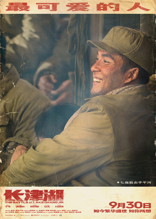 战争史诗巨制《长津湖》今日正式宣布定档9月30日!片方发布了一组名为“最可爱的人”的主题角色海报,同时还发布了由张靓颖献唱的宣传主题曲MV《最可爱的人》。MV中首次呈现了以吴京和易烊千玺饰演的伍千里、伍万里兄弟为代表的七连将士们远赴朝鲜战场,在冰天雪地里奋勇杀敌的场面,影片聚焦的那场“卫国之战”的残酷与悲壮也第一次呈现在观众面前。