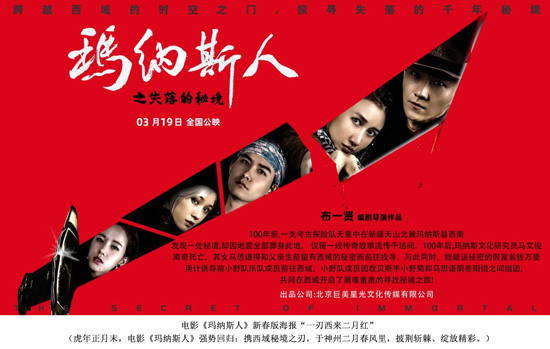 红红火火的虎年元宵才刚刚过去,未出正月,电影《玛纳斯人之失落的秘境》(以下简称电影《玛纳斯人》)就迫不及待地踏着春节档的东风,卷土重来。剧组发布了一张新春版海报,并正式宣告重新定档3月19日。