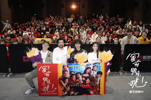 现场观众们也以自己的方式传递着对《窗前明月,咣!》这个“2025第一份快乐大礼包”的喜爱。有观众为主创们现场颁奖,夸赞电影是“2025新年开心必备”;也有观众送上扫把,邀请费翔、左凌峰和傅菁为观众“扫咣2024的烦恼”。交流现场同样也有暖心一幕,主创们特地举办无障碍专场,为视障观众们带来冬日的快乐,而观众则以盲文书写为影片送上热烈真挚的祝福,直言:“全场大笑不止50次,大家基本上两分钟就有一次爆笑。”“来感受这部电影,收获了最纯粹的快乐。”