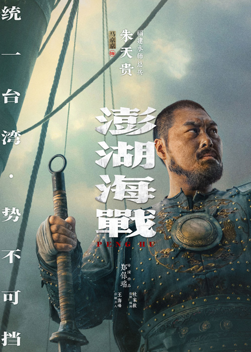 海报中,王学圻老师扮演的福建水师提督施琅“怀私不计,止戈两岸”的“皓首老将”形象跃然而出;青年演员易烊千玺饰演27至29岁的康熙皇帝,眉宇间凝聚着“英年雄主,运筹千里,一统山河”的决心;青年演员侯雯元扮演的福建水师外委把总施世骅,战场上与父亲和水兵兄弟“肝胆相照”,但经历澎湖“战火洗恨”后却“释刃归帆”;青年演员罗一舟扮演的是投军福建水师担当碇手的“莆田渔户”许天曹,心中最大愿念是与家人“同舟起航,祈求团圆”;韩童生老师扮演的是重要的“平台辅臣”福建总督姚启圣,澎湖海战后“梦圆海靖边宁”;演员胡明饰演了福建水师左营游击刘克宏,此人在电影中则是“暗怀异志,结党怠战,惑乱军心”的人物;马京京塑造的是福建水师总兵朱天贵,此人在历史上是著名的“海战骁将”,澎湖海战中最终“怀忠抱憾,血染沙场”;演员答有为扮演的福建水师后营游击曾成,在澎湖海战中“赤胆忠心,临危不惧,英魂镇海”。